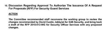 Wanna bet he gets the security contract? Commissioner Wolfson, as chair of the finance committee, has already instructed staff to rewrite the request for proposal to incorporate changes Custin has recommended.