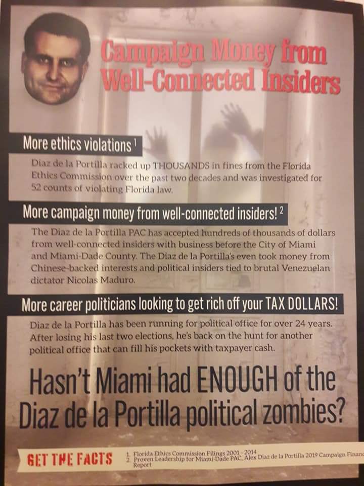 And on the other side: “Hasn’t Miami had ENOUGH of the Diaz de la Portilla political zombies?” Plural, again.