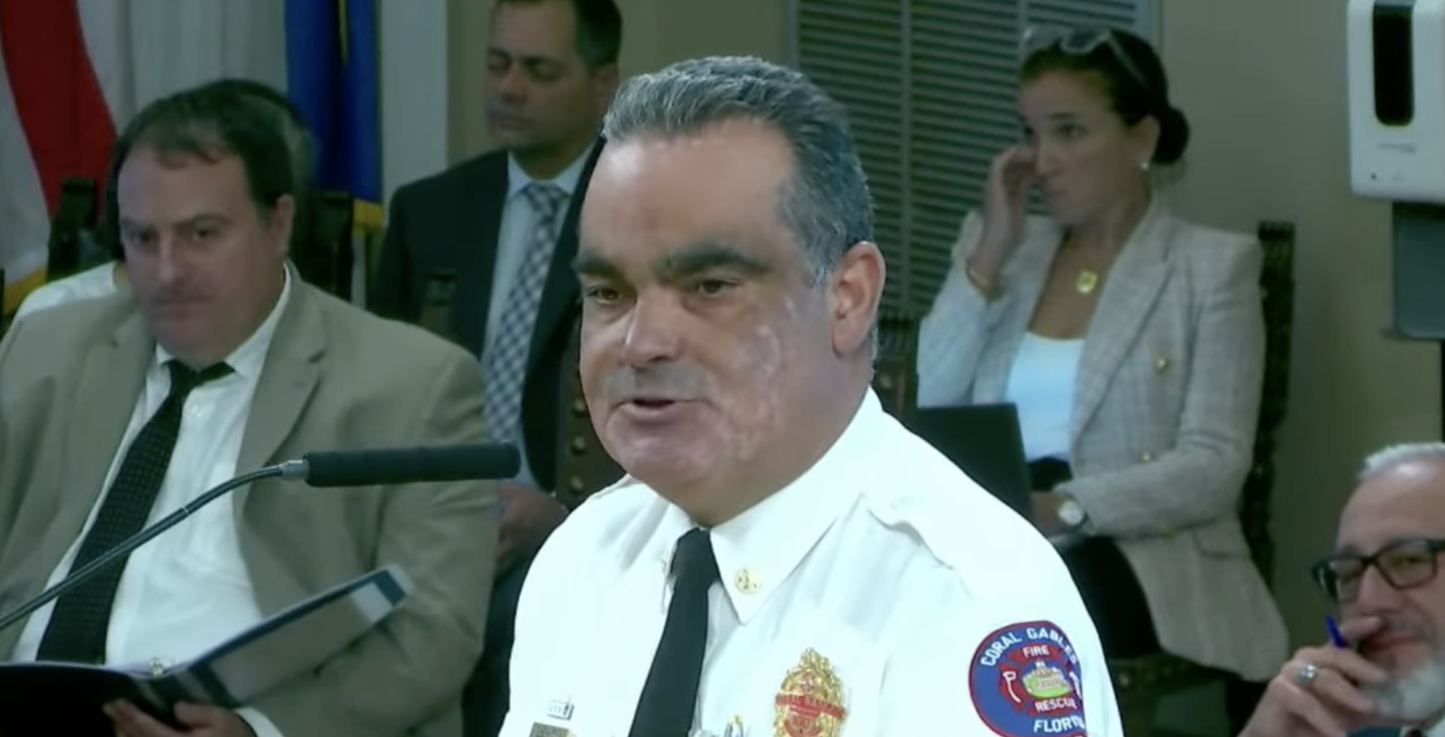 Pero, por supuesto, the fire chief didn’t address any of those concerns. His speech was more like a pep rally or campaign stump than an actual response to the issues raised in the letter. There was lots of talk about the “core mission” being public safety and the “public trust” that the men and women of the department hold dear. Lots of talk about the “Coral Gables brand,” which De La Rosa is quick to instill in every veteran and new recruit.