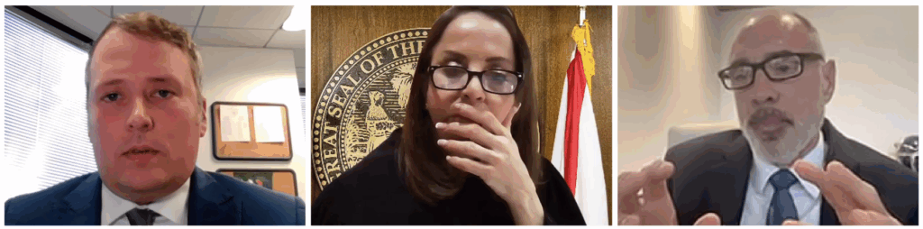 Assistant City Attorney Eric Eves, Judge Valerie Manno Schurr and plaintiff’s attorney, Alan Lawson