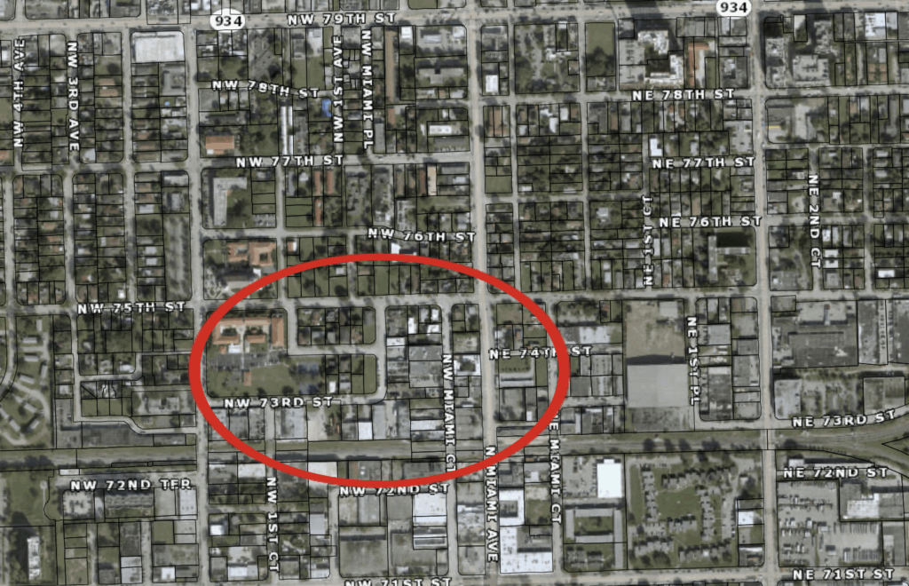 At least 37 independent parcels near St. Mary’s Cathedral, the seat of the archbishop of the Roman Catholic Archdiocese of Miami at 7525 NW 2nd Ave have been snatched up since August of 2021 for a total of more than $82 million — way above the market rate — by the same entity, Chicago-based LRMF Owner LLC. They include vacant lots, industrial warehouses, multifamily buildings and at least one single family home which, together, totals more than 24 acres.