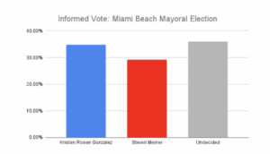 The poll did not include a third candidate in the Beach mayoral race, political newcomer Victor Rosario, because everyone is looking at this as a cage match between Rosen Gonzalez and Meiner. Unless anybody else qualifies before the Sept. 20 deadline.