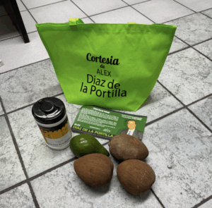 except now it has three mameys, an avocado and some sanitizing wipes in it. Did he have those left over from COVID supplies?