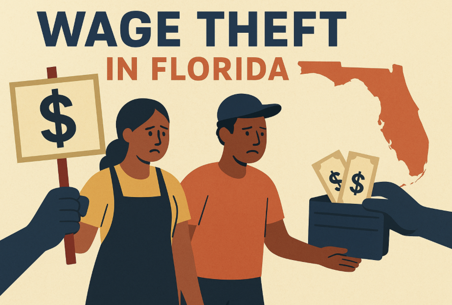 ¿Y mientras tanto? The dishwashers, construction workers, cashiers, and nursing home aides — the backbone of Florida’s economy — are being ripped off and left on their own to fight for crumbs. Statistics show that the industries most affected include agriculture, food service/hospitality, retail, and low-wage personal services (laundries, salons, etc.) and that immigrant workers, Black and Latina women, people of color overall are over-represented among those hurt by wage theft.