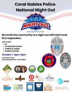 To be clear: National Night Out in the Gables was always going to be on Tuesday, October. 7. It was always going to be at Temple