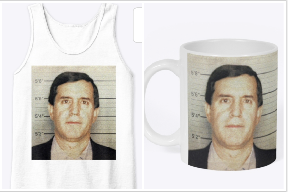 Even his 2001 domestic violence arrest for throwing a teacup at his then wife has been turned into a local joke — complete with merch: You can buy a “wife-beater” tank top with his mugshot on it, or a mug, or a sticker and other stuff from the BecauseMiami website. Ladra is getting a sticker for $9.99.